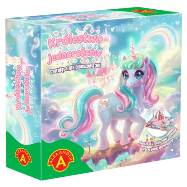 „Królestwo Jednorożców” to wspaniała propozycja dla dzieci, które uwielbiają bajkowe światy, jednorożce i magiczne przygody. Doskonale sprawdzi się podczas rodzinnych wieczorów i wspólnych zabaw z przyjaciółmi, ucząc, bawiąc i rozwijając dziecięcą wyobraźnię.