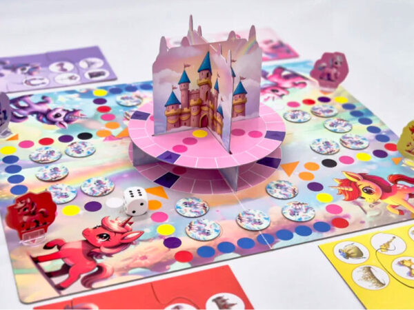 Podczas rozgrywki mali odkrywcy ćwiczą pamięć, spostrzegawczość i logiczne myślenie, zapamiętując położenie żetonów i planując swoje ruchy. Każdy rzut kostką to krok w stronę zamku i nowa szansa na odkrycie ukrytych przedmiotów. Emocje narastają z każdą turą, a radość osiąga szczyt, gdy pierwszy jednorożec z kompletem pięciu czarodziejskich przedmiotów dotrze do bram magicznego zamku.