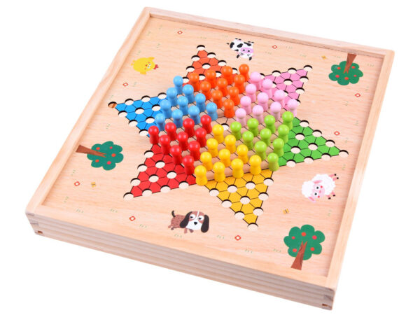 Ilość graczy 2-6 graczy jednocześnie. Pionki każdego z graczy rozpoczynają w narożnikach 6 ramiennej gwiazdy, zadaniem jest jak najszybciej przenieść pionki do przeciwległego narożnika, korzystając z ruchów podobnych do tych znanych z warcabów. Plansza gwiazdy z otworami na pionki usytułowana jest na podstawce do grania. Pionki występują w 6 kolorach. Wygrywa ten zawodnik, który jako pierwszy przeprowadzi wszystkie swoje pionki do przeciwległego ramienia gwiazdy. W grze należy użyć kolorowe pionki.